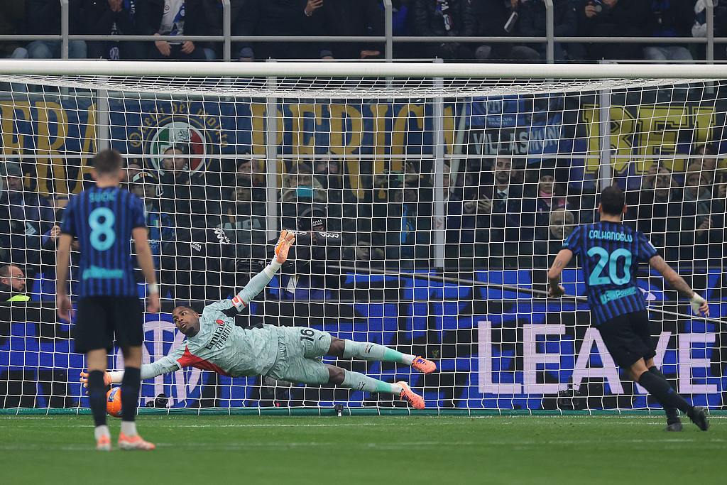 恰尔汗奥卢本有契机将功补过,干系词第74分钟小图拉姆禁区内遇到犯规制造的点球又被他甩手,米兰门神精确预判了恰尔汗奥卢的射门标的,将点球扑出。